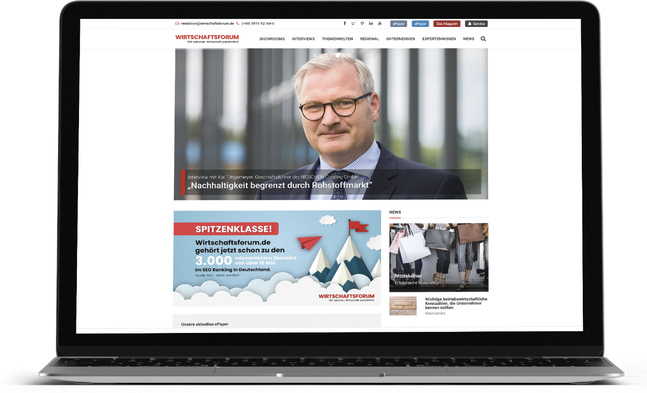 Wirtschaftsforum.de to platforma informacyjna na temat ekonomii prowadzona przez Manfreda Brinkmanna, która zajmuje się tematami informacyjnymi oraz wywiadami z istotnymi partnerami biznesowymi. Z celem zwiększenia widoczności, nasi bohaterowie od razu wzięli się do pracy.