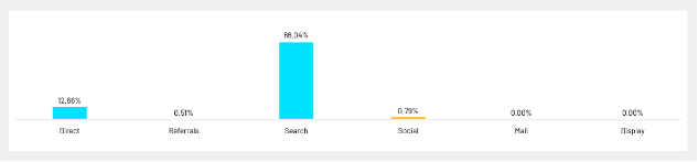 Dzięki naszym różnorodnym działaniom SEO w 2021 roku aż 86,04% ruchu zostało wygenerowane poprzez zapytania w wyszukiwarce Google.